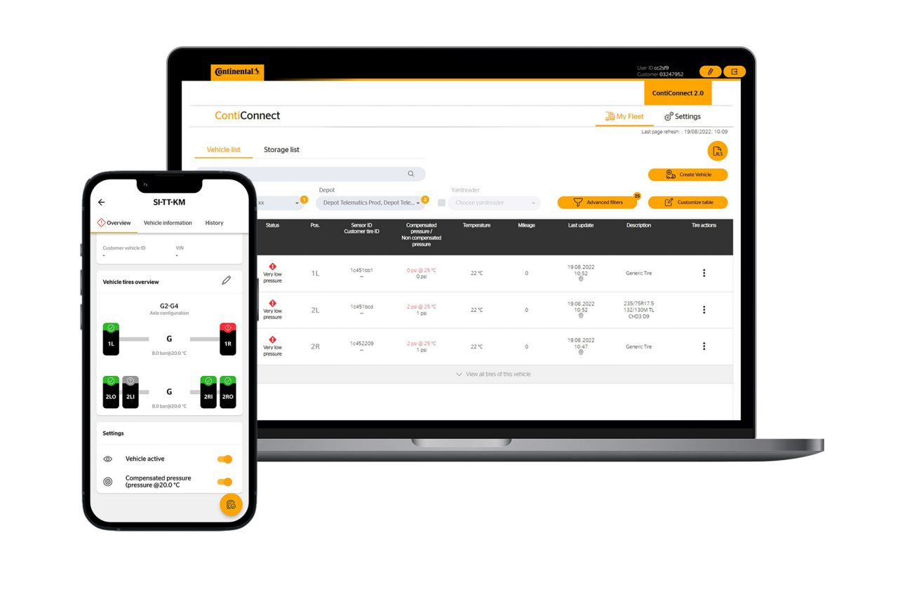The ContiConnect web portal enables real-time monitoring of all tires across the entire fleet.