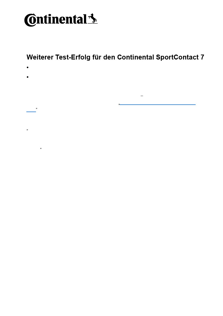 Continental hat in der Entwicklung des SportContact 7 alle Leistungskriterien des Vorgängermodells erneut verbessert, um maximales Fahrvergnügen mit höchster Sicherheit und Nachhaltigkeit im Höchstleistungsreifensegment zu vereinen. So ist die Fahrleistung auf der Rennstrecke um 10 Prozent gestiegen, die Nassbremswege reduzieren sich um 8 Prozent, beim Trockenbremsen ist der neue SportContact um 6 Prozent besser und die Laufleistung verlängert sich um 17 Prozent. Der SportContact 7 eignet sich für sportliche Fahrzeuge und ist für Felgengrößen von 18 bis 23 Zoll erhältlich.