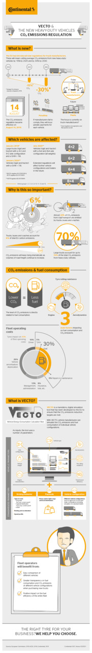 Who is affected by the regulations? How will the new CO₂ emissions regulations make road transportation more efficient? What is VECTO? How will it provide greater transparency on your fleet expenditures? And what are the main contributors to fuel consumption and CO₂ emissions? Read the infographic to find out.