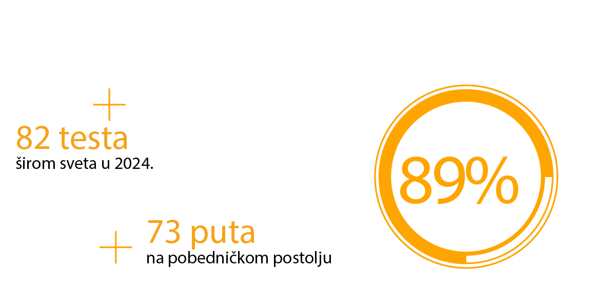 Pneumatici Continental nastavljaju da osvajaju prva mesta na testovima širom sveta. U 82 nezavisna testa obavljena od 2024. godine naši su proizvodi bili na postolju 73 puta: neverovatan udeo prvih mesta od 89 posto. Nagrade koje nas čine posebno ponosnim uključuju nagradu za najbolji pneumatik u poslednjih 50 godina koju dodeljuje časopis Auto Motor Sport, kao i redovna prva mesta na glavnim testovima letnjih i zimskih pneumatika koje sprovodi Nemački auto-moto savez (ADAC). Ostvareni rezultati na testovima važan su razlog zbog koga nam proizvođači automobila poklanjaju poverenje i montiraju naše pneumatike na svaki treći automobil koji siđe s njihovih proizvodnih traka.