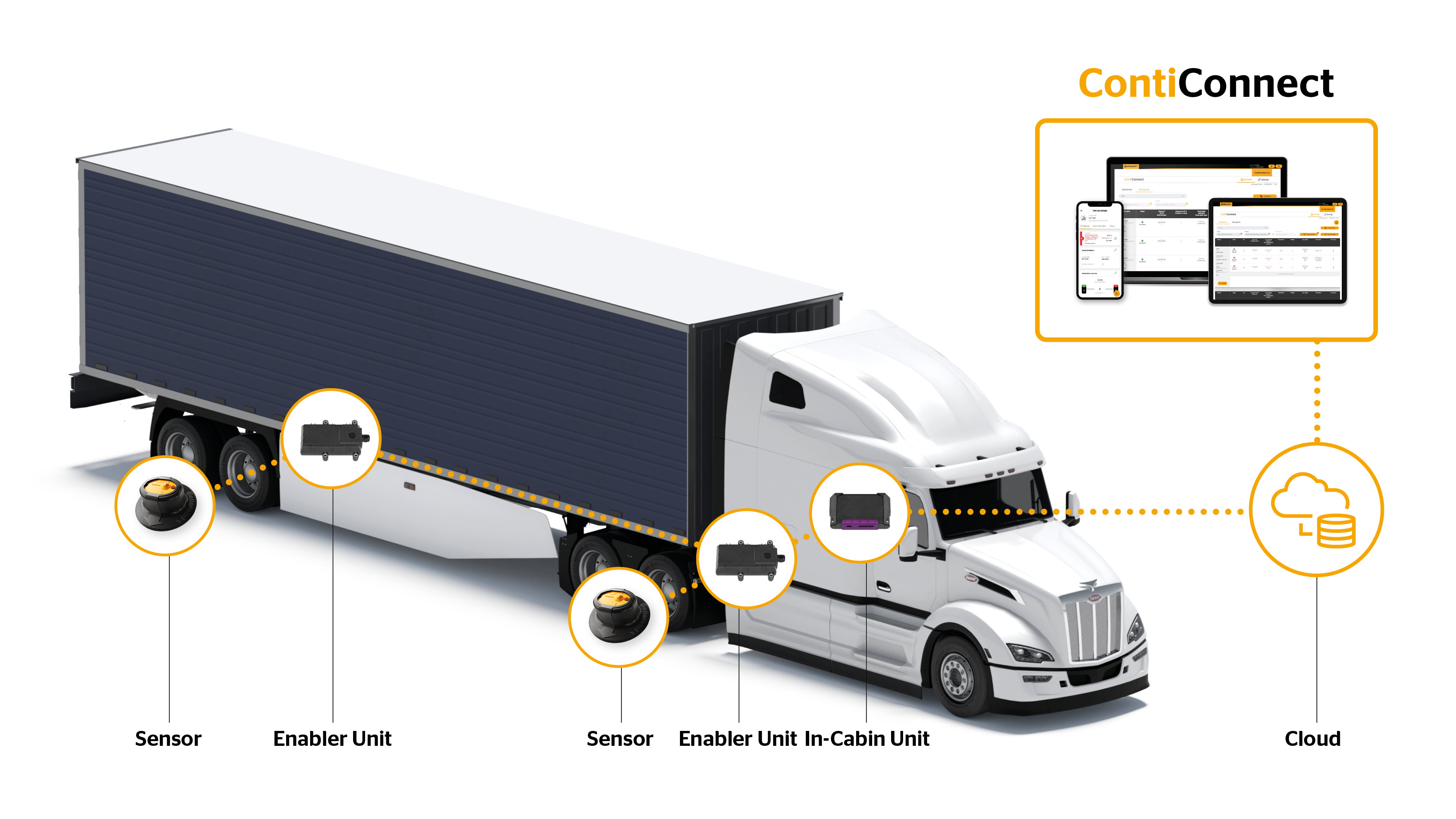 - Alerte du personnel du back-office en cas de problèmes de pneus par le biais du portail Web de Continental et/ou des plates-formes d'application téléphonique "On-Site".