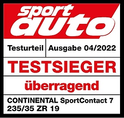 Im Frühjahrstest der Sport Auto wird der SportContact™ 7 nicht nur Testsieger, sondern zusätzlich mit dem Urteil „überragend“ bewertet. Diese Auszeichnung vergibt die Sport Auto zum ersten Mal.