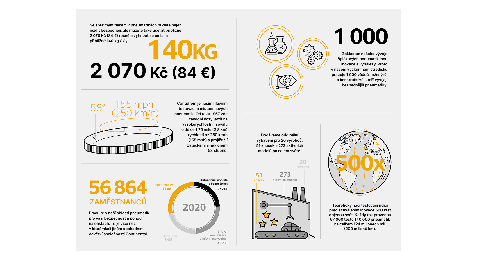 Continental je mnohem víc než jen pneumatiky. Od založení naší společnosti v roce 1871 pracujeme na tom, aby byla přeprava osob a zboží bezpečnější a efektivnější. Naše inovativní vize se po desetiletí nemění. S tím, jak se vozidla stávají stále inteligentnějšími, spojujeme naše odborné znalosti v oblasti autonomní mobility a bezpečnosti a propojení vozidel, abychom data a synergie proměnili v lepší zážitek z jízdy.