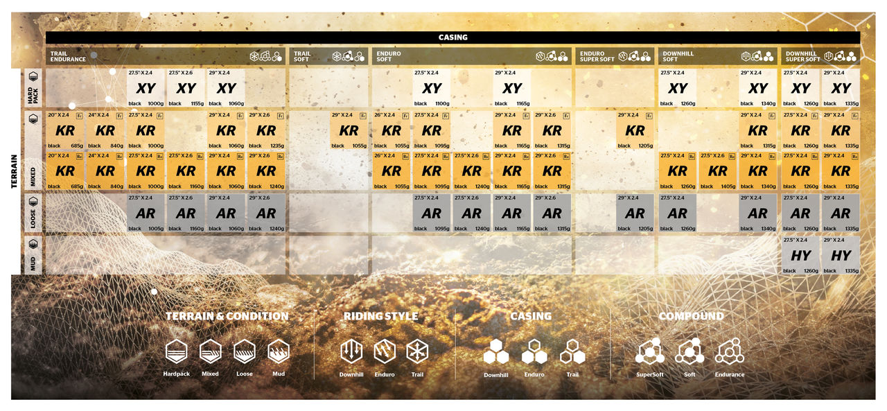 Grâce à leurs motifs spécialement développés, KRYPTOTALFr et KRYPTOTALRe offrent les meilleures performances pour des manœuvres spécifiques sur la roue avant et arrière, et forment ensemble la combinaison idéale pour les terrains exigeants.
