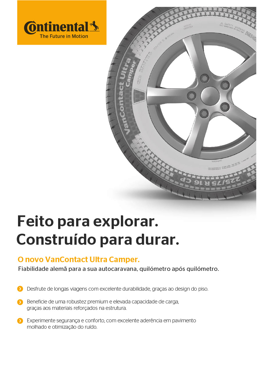 A sua construção reforçada cumpre os exigentes padrões de pneus para autocaravana (CP), garantindo maior capacidade de carga e mais segurança quando a autocaravana vai totalmente equipada. Assim, pode fazer-se à estrada com tudo a bordo — e com total tranquilidade.