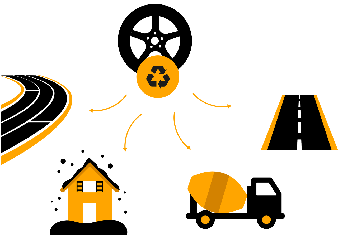 Até o material mais fino, a borracha em pó, pode ser utilizada na construção de estradas, por exemplo, como camada de asfalto capaz de absorver ruído.