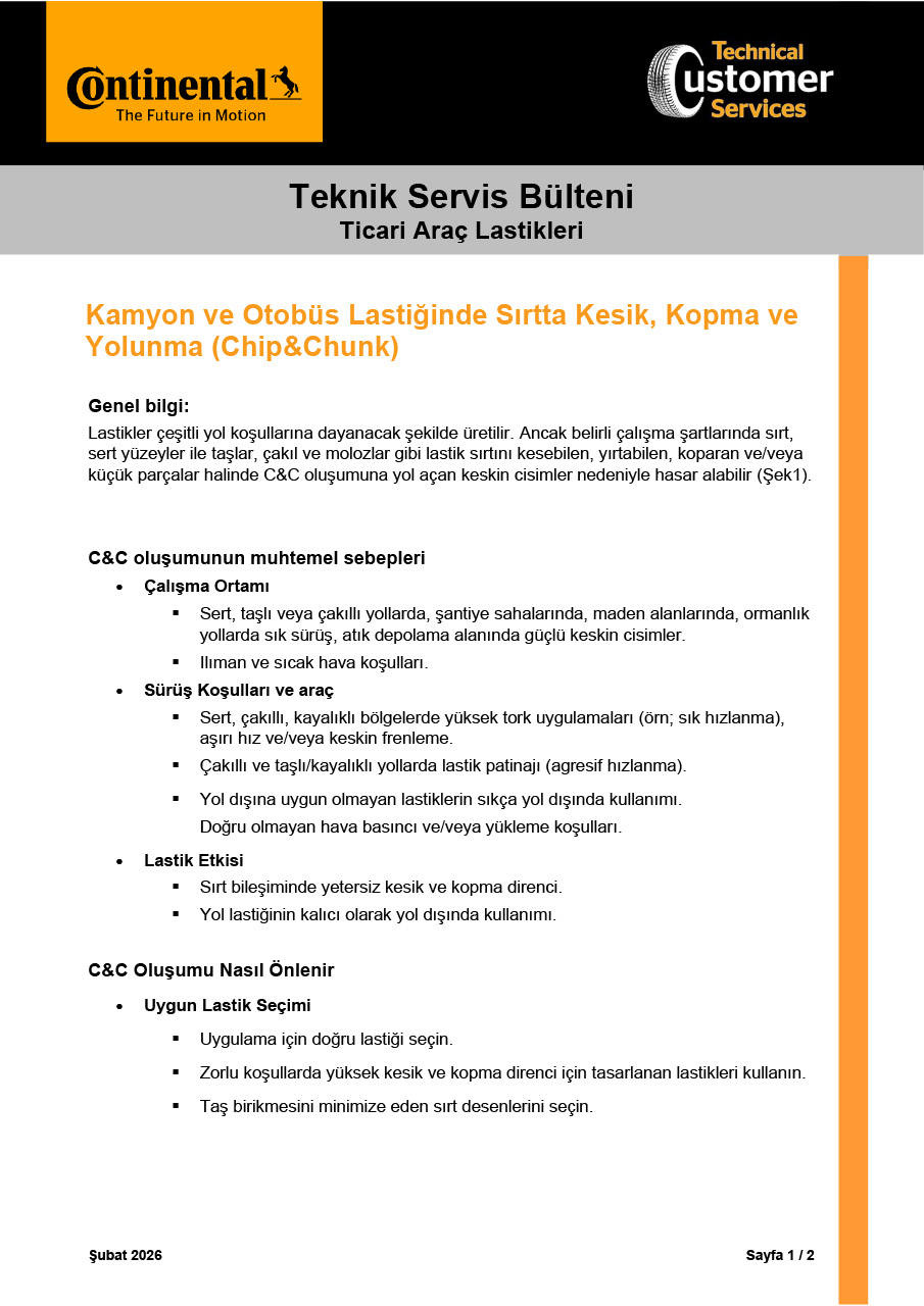 Kamyon lastikleri ile ilgili "Teknik Servis Bültenlerine" aşağıdaki alandan ulaşabilirsiniz.