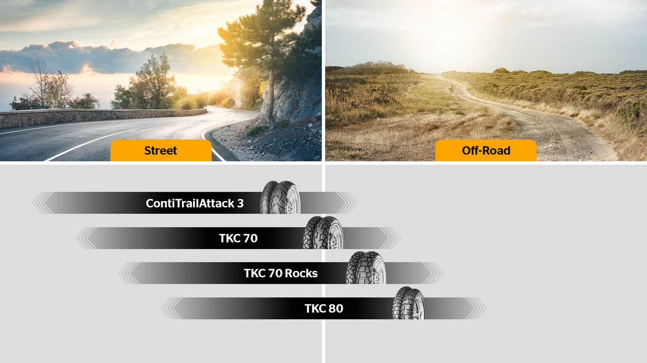Whether on asphalt, unpaved paths or off-road terrain, Continental’s adventure tires get passionate motorcyclists safely to their destination and open up new horizons. All models provide outstanding grip, excellent self-cleaning capabilities and impressive mileage. Continental tires elevate the riding experience to an entirely new level. No matter where the journey leads – The Continental adventure portfolio has the ideal motorcycle tire for every terrain and every purpose.
