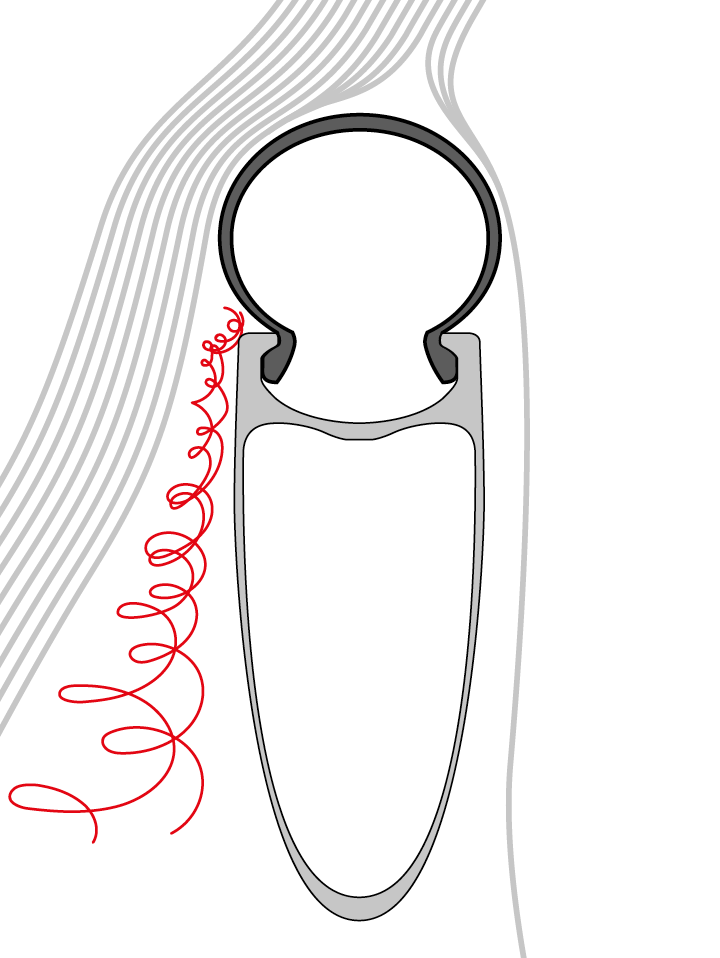 The aero-optimized tread pattern certainly looks different: 48 little cavities are regularly distributed over its surface. These so-called ‘vortex generators’ are the very feature that manage to control the turbulence in the airflow on the surface of the front wheel. Ultimately, this results in a perfected storm that allows for the reduction of drag of the entire wheel tire system.
