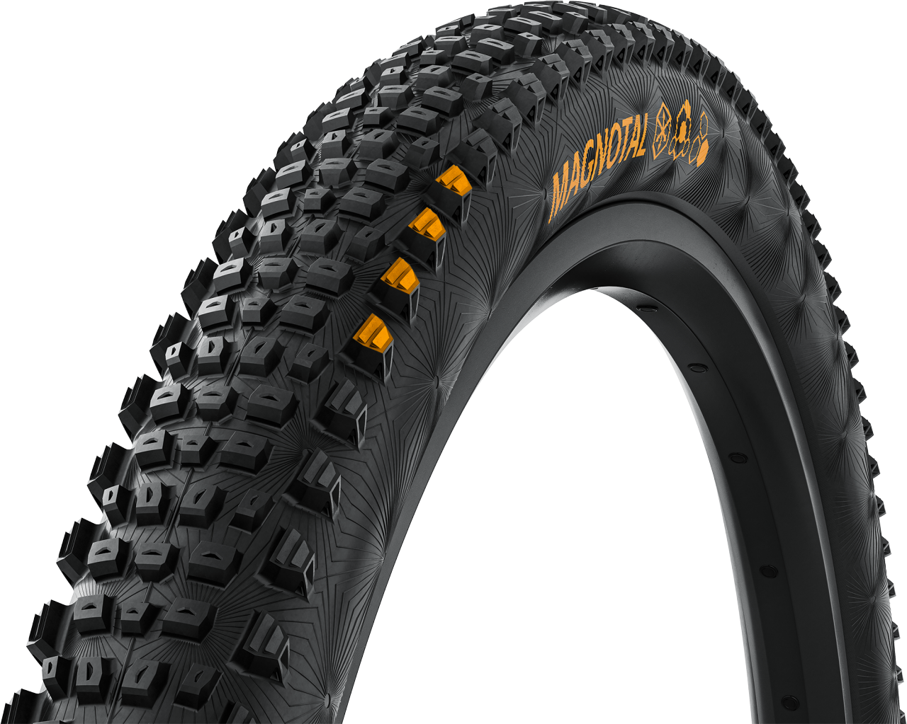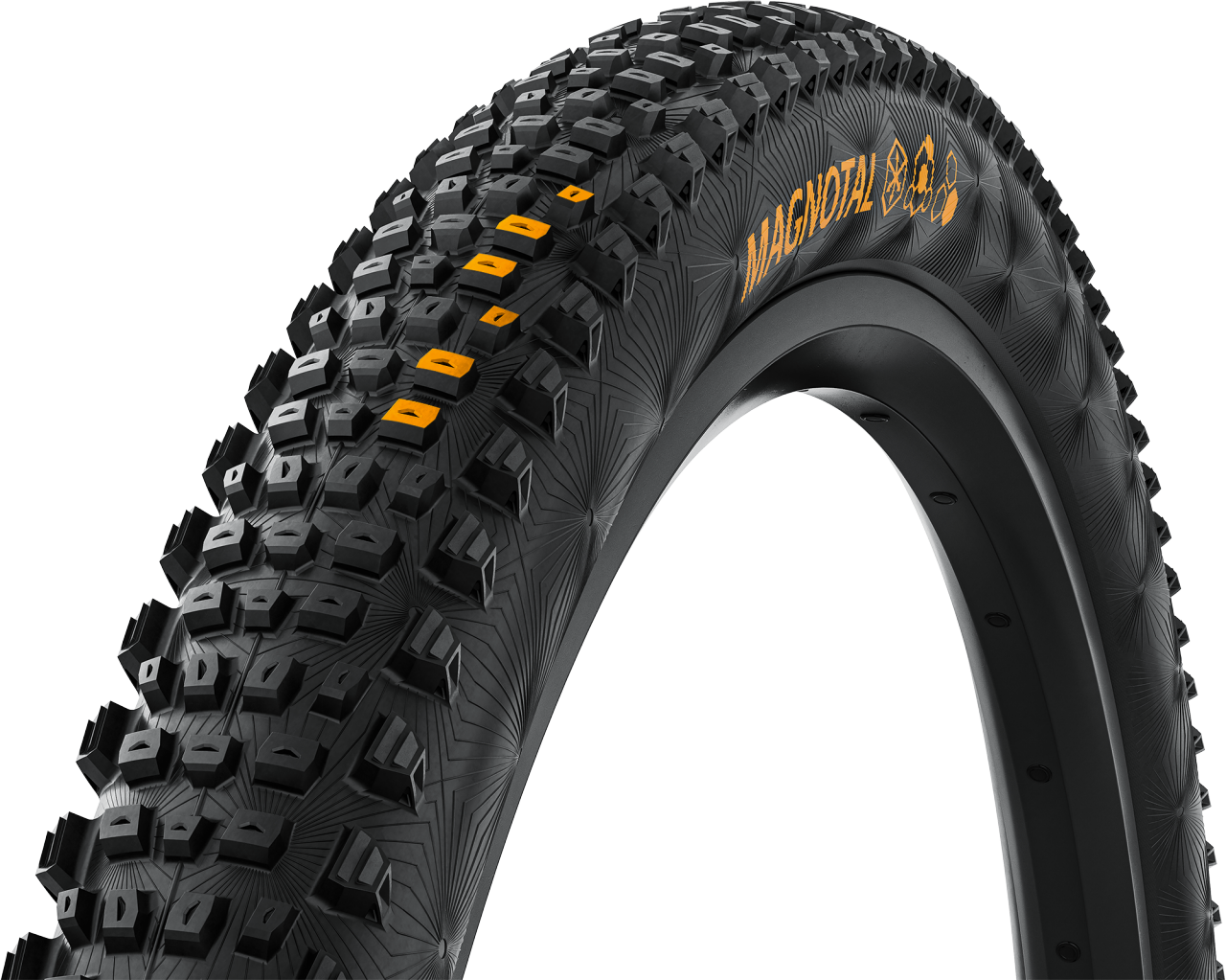 MAGNOTAL is designed for dry to wet conditions for hard, mixes, loose or muddy soils. It is the go-to solution for aggressive down-country, all-mountain and trail use cases. The newly designed tread pattern and casing sets a new standard for an all-rounder MTB tire – closing the gap to our Gravity range.