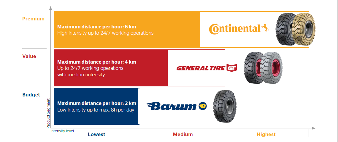 Whether for heavy-, medium- or light-duty use, selecting the right material handling tires is crucial. From international logistics centers to regional operations and from manufacturing to warehousing, Continental, General Tire and Barum offer the right forklift tires for every industrial application. Under the Continental umbrella, this tailored tire portfolio is designed to meet various customer needs. Here, you will find a guide to help you select the right industrial tire for your specific application and maximize the efficiency of your fleet.