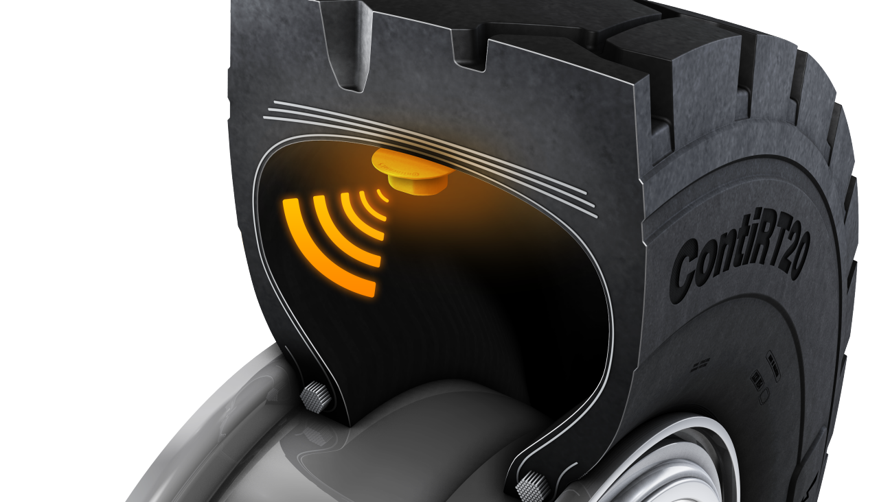 All ContiRT20 tires starting with 24" come with an integrated tire sensor from the factory. This allows for a seamless integration into our digital solutions portfolio.