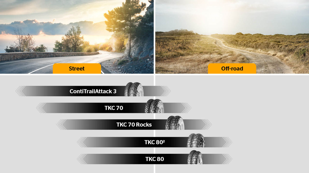 Whether on asphalt, unpaved paths or off-road terrain, Continental’s adventure tires get passionate motorcyclists safely to their destination and open up new horizons. All models provide outstanding grip, excellent self-cleaning capabilities and impressive mileage. Continental tires elevate the riding experience to an entirely new level. No matter where the journey leads – The Continental adventure portfolio has the ideal motorcycle tire for every terrain and every purpose.